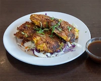 Mixture of spiced peas and potatoes stuffed in triangular pastry and deep fried.